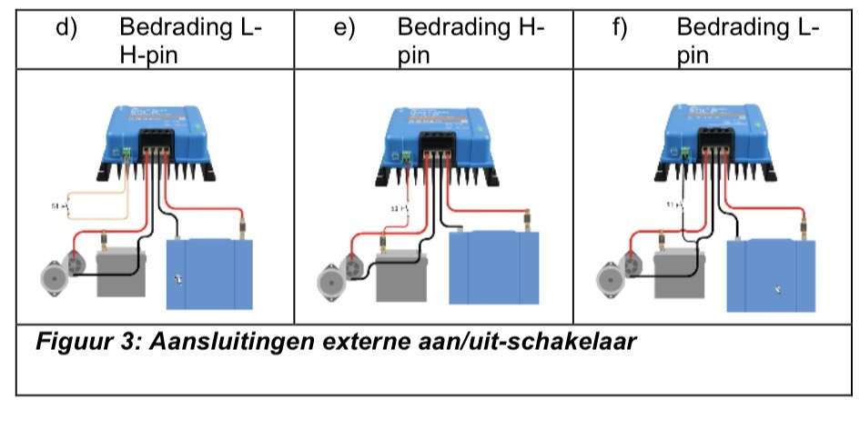De bovenste lader dus voor aan de paal. De volgende voor tussen de startaccu/dynamo en de hh-accu. Aangezien de nieuwe accu tot wel 100A kan opnemen is dit beter voor de dynamo dan een relais. Werkt als lader dus ook helemaal naar wens in te stellen met de Victro connect app.