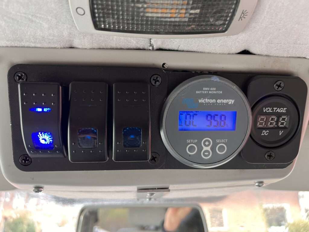 16 jaar geleden 35mm2 kabel gebruikt vanaf de startaccu en tussen de Optima’s onderling. Dat is mooi blijven liggen. Grootste verandering was van twee accu’s naar één. De LiFePo4 onder de bestuurdersstoel gelegd. De Orion kon nu dus mooi onder de passagiersstoel. Daar was nu weer genoeg ruimte. Tevens hier de Cyrix naar verplaatst. Die had ik dus al en ga ik weer gebruiken voor het laden/voeden van het startaccu/auto gedeelte, mocht ik dat nodig vinden. Bijvoorbeeld bij langere stilstand. Ik heb er een on off on keuze schakelaar tussen geplaatst. Ze kunnen dus nooit tegelijk operationeel zijn.